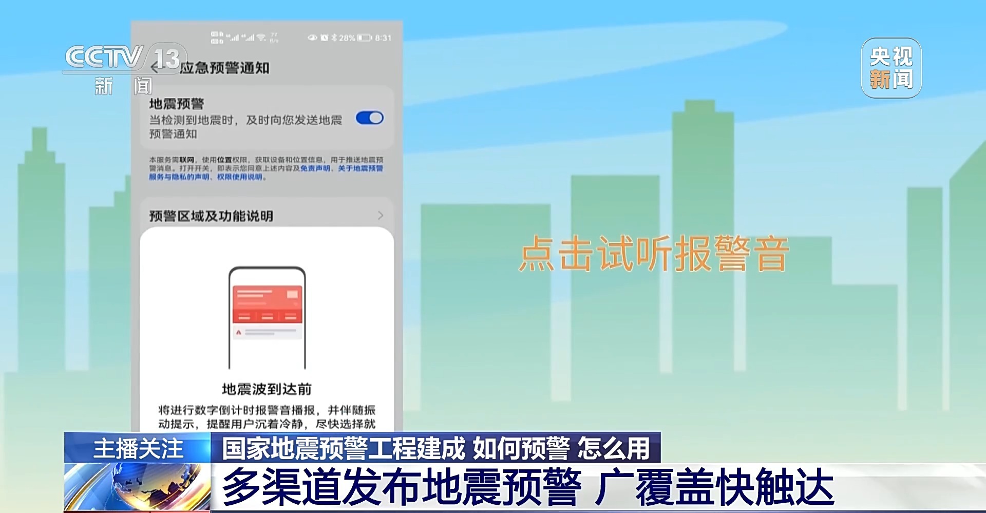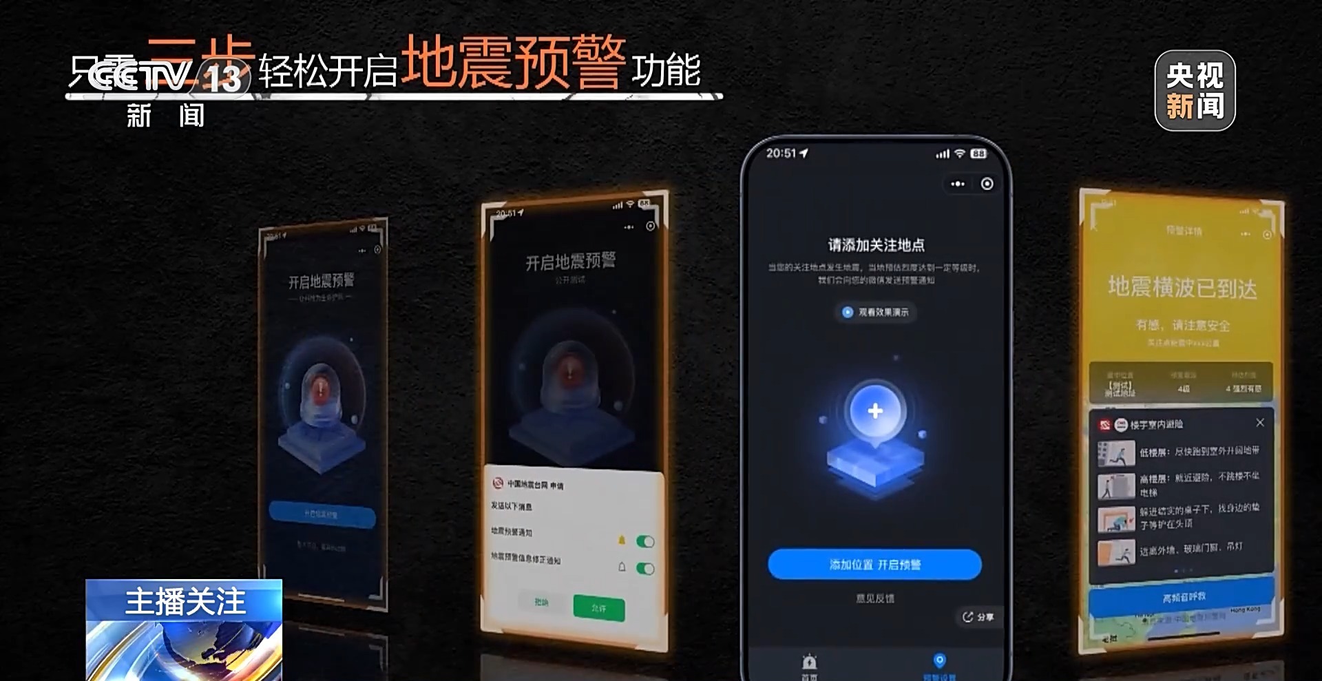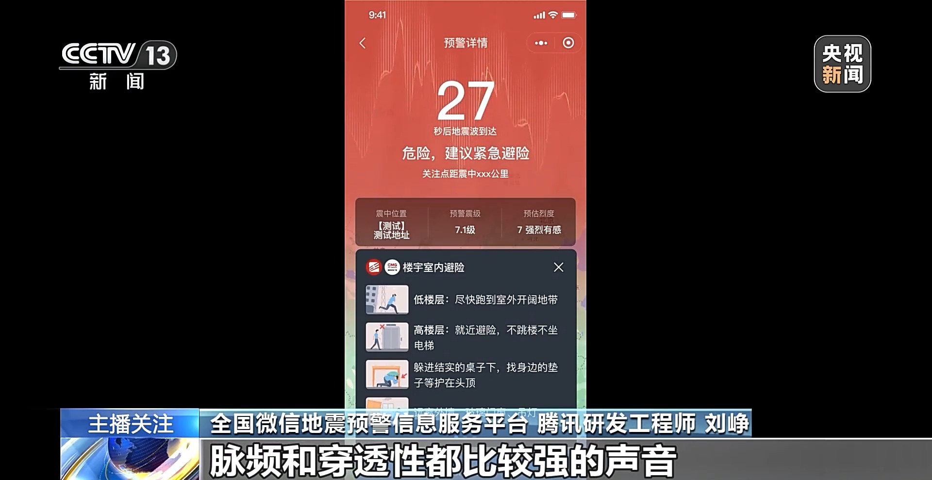 中国地震台网中心研究员 侯建民:这个预警工程建成以后,我们通过三种主要的途径,包括服务终端、应急广播还有一些移动终端向老百姓提供预警信息服务,目前也基本具备了这种亿级用户的覆盖和秒级触达的公共服务能力。