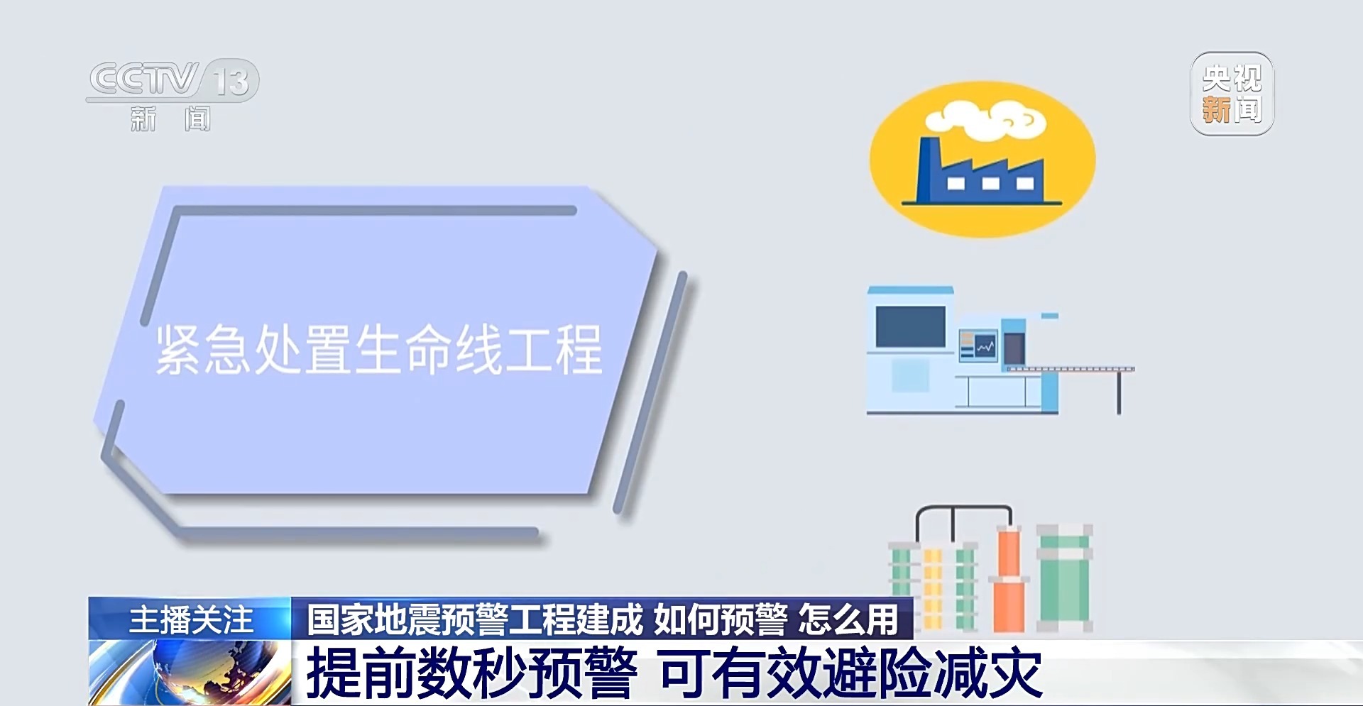 地震预警虽然只有短短数秒,但地震避险减灾的每一秒都很宝贵。提前1秒,可以关闭电磁阀,提前2秒,可以让核电站紧急停堆,提前3秒,可以让很多化工厂处于安全状态。利用地震预警系统提供的数秒至数十秒预警时间,重大基础设施、生命线工程可以采取紧急处置措施,及时关闭燃气管线、关闭核反应堆、停止精密仪器操作等,以避免次生灾害的发生。
