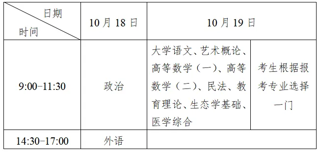 2.专科起点升本科考试时间表(每科考试150分钟)