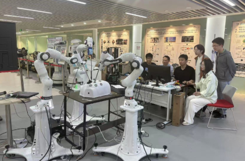 近日,在湖南大学机器人视觉感知与控制技术国家工程研究中心内,创新热潮涌动,驱散了深秋的凉意。走进一楼展厅,沿着陈列成果的展板向前,三台白色机械臂正在模拟手术台前精准作业。与此同时,几位学生就坐在展区电脑前实时调试代码。