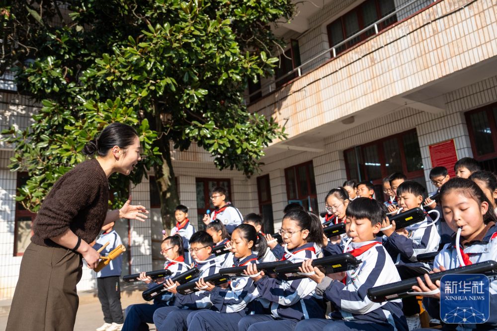 近年来,湖南省益阳市南县加大对乡村小学音乐教育的支持力度,构建以口风琴为核心、多种小乐器协同的“一琴多器”教学模式,通过设计“技能奠基—协作合奏—创意表达”三阶内容,融入节奏游戏、小组合作与创编活动,提升乡村小学生的音乐素养。当地还结合音乐教师“送教下乡”机制,增加小学美育教育师资力量,促进城乡义务教育均衡发展。