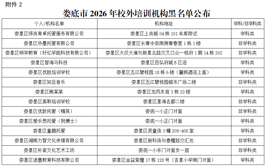 2.娄底市2026年校外培训机构“黑名单”公布