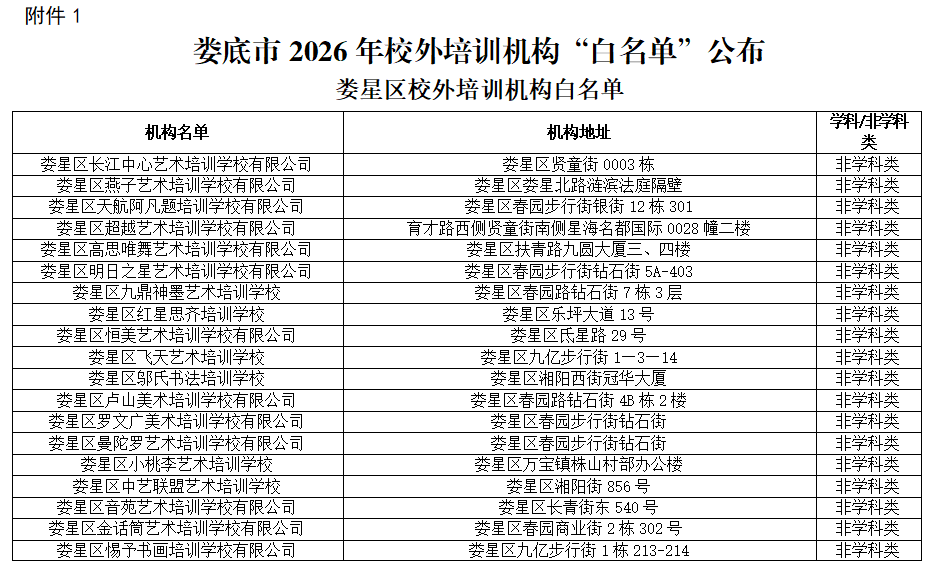 1.娄底市2026年校外培训机构“白名单”公布