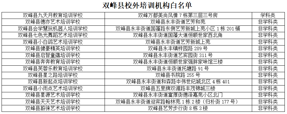 一、谨慎选择培训机构。按照“双减”政策要求,凡是在寒假期间举办学科类校外培训的机构或个人,均属于违法违规行为,请家长朋友自觉抵制,坚决不参加学科类培训。理性参加非学科类培训,家长朋友在结合孩子的兴趣,选择参加体育、科技、文化艺术等非学科类培训时,要注意查看机构是否具备“办学许可证”等相关资质,是否在教育行政部门公布的“白名单”范围内(见附件1)。