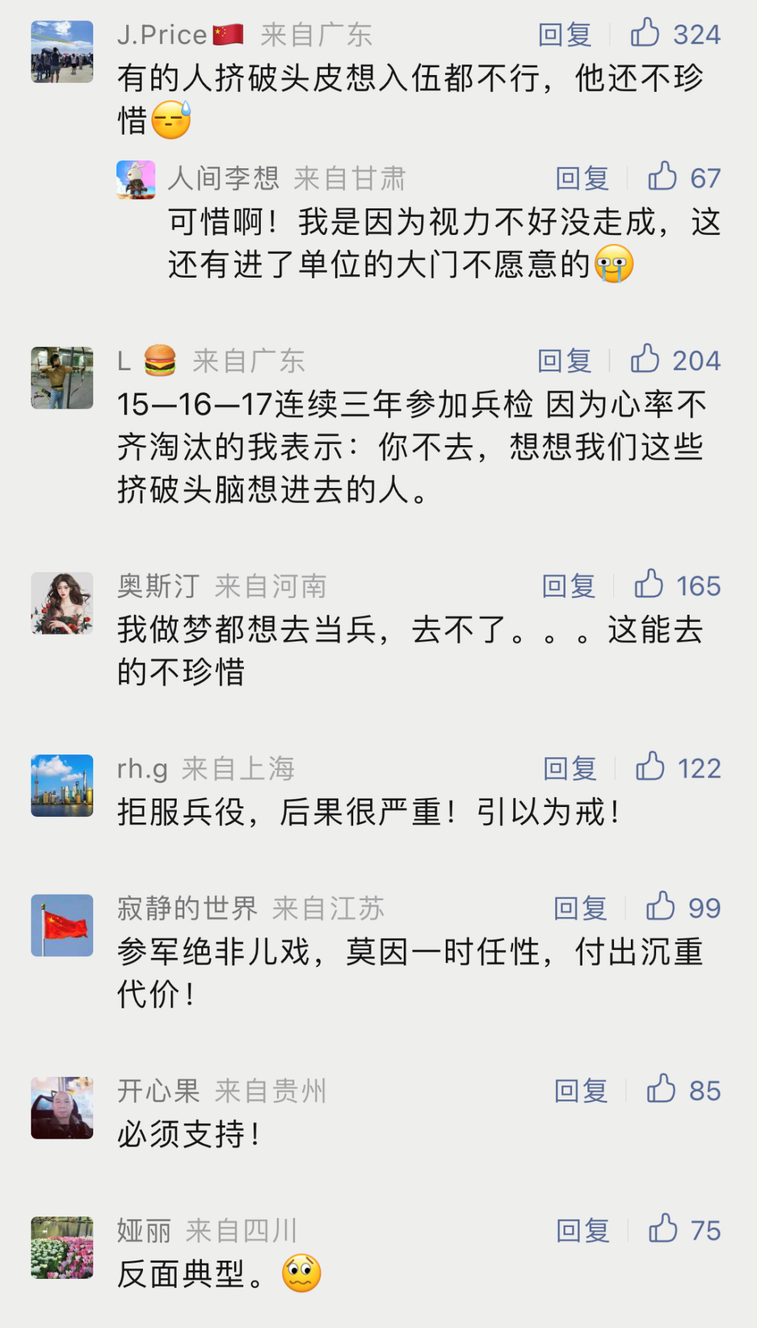 户籍是一个人永远的身份证明,在户籍信息中注明“拒服兵役”永久字样,给人生留下了抹不去的“污点”。在最好的年纪投身军旅,要把吃苦当“吃补”,不要因为一时的困难就害怕或退缩,要记得入伍的初心及出发时的誓言。