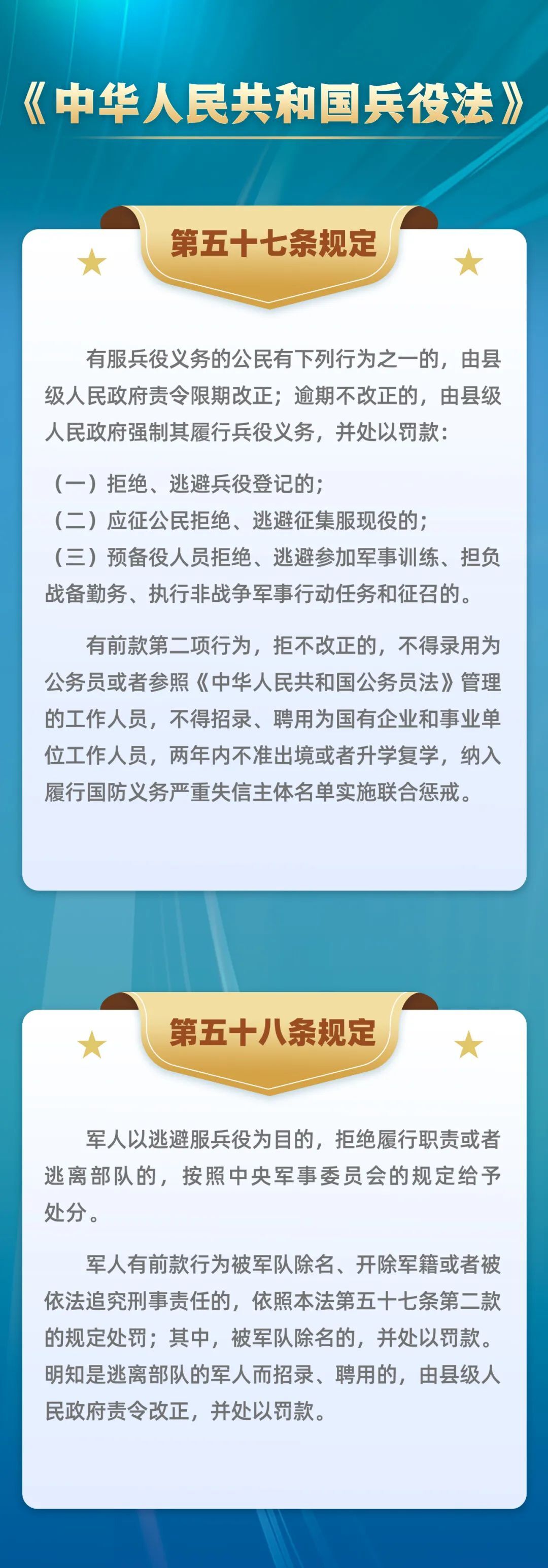 对于有出境学习、考试、旅游等需求的青年,以及需要复学、升学等大部分在校的青年来说,拒服兵役的这项处罚,不仅会让你失去两年在校学习的宝贵时间,还会使你处处受限。