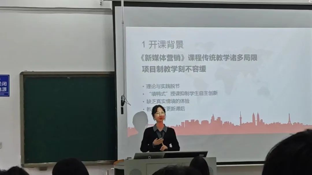 “传统课堂是‘教学生造桌子’,项目制课堂则是把课堂交回给学生,‘让学生自己造桌子’。”湘潭理工学院商学院青年教师罗天婵这样形容其主讲的《新媒体营销》课程。