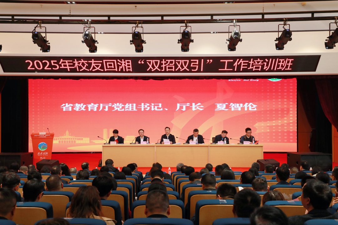 4月2日上午,2025年校友回湘“双招双引”工作培训班在中南大学举办。省教育厅党组书记、厅长夏智伦出席开班仪式并讲话,中南大学党委副书记李景升致辞,省教育厅党组成员、副厅长兰勇主持。
