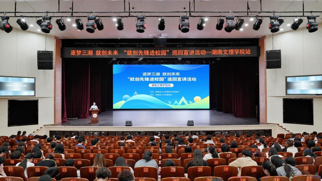 近日,由省人社厅主办的2025“就创先锋进校园”巡回宣讲活动第六站走进湖南文理学院,为千名青年学子启迪职业智慧,指引奋进方向。