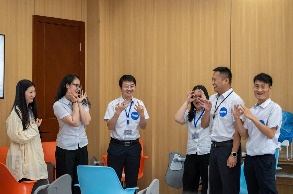活动以充满趣味的“找呀找呀找搭档”破冰环节开场。在彭萍的引导下,辅导员们围绕姓名由来、生命中最具影响力的两个人物、最欣赏自我的三件事展开分享,拉近彼此心理距离。紧接着的“无声生日排序”挑战,要求参与者仅依靠肢体语言完成年龄序列排列,在非言语互动中考验观察力与默契度。随后的“团队拼图”分组环节,通过随机组队、设计团队标志动作等方式,充分激发团队协作意识,各小组诞生了创意十足的团队介绍,现场氛围热烈非凡。