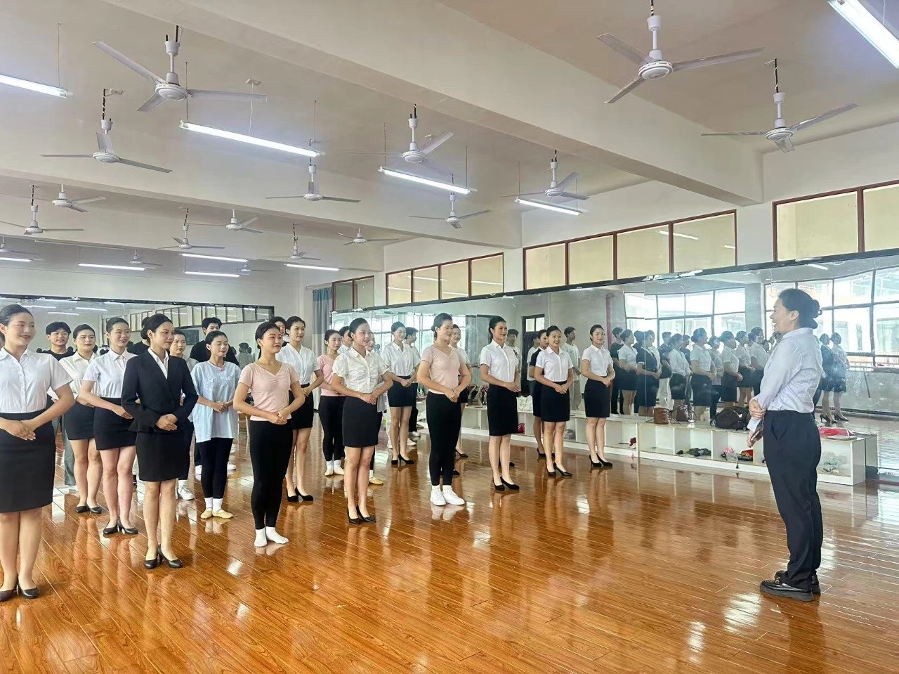 近日,长沙航空职业技术学院管理学院空乘专业学生花卉、陶欣宇等4人走进芷江民族职业中专学校,开展为期10天的专业技能培训。这场由“准空乘学子”主导的教学实践,是“3+2”中高职衔接人才培养新模式指导下一次职业教育协同发展的成功实践。