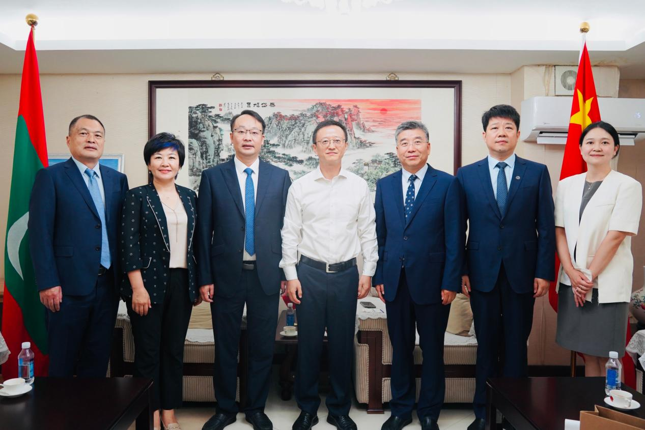 会前,中方理事会成员集体拜会了中国驻马尔代夫大使孔宪华。孔宪华系统介绍了马尔代夫国情及当前重点推进的基础设施建设和数字化转型计划,指出其为中马教育合作带来新机遇。他充分肯定了汉语中心在促进中马文化教育交流方面取得的成果,并期望中心持续扩大中文教育覆盖面,推进“中文+职业”特色发展路径,推动中文教育与职业技能培训深度融合,为马尔代夫培养更多本地化专业人才。