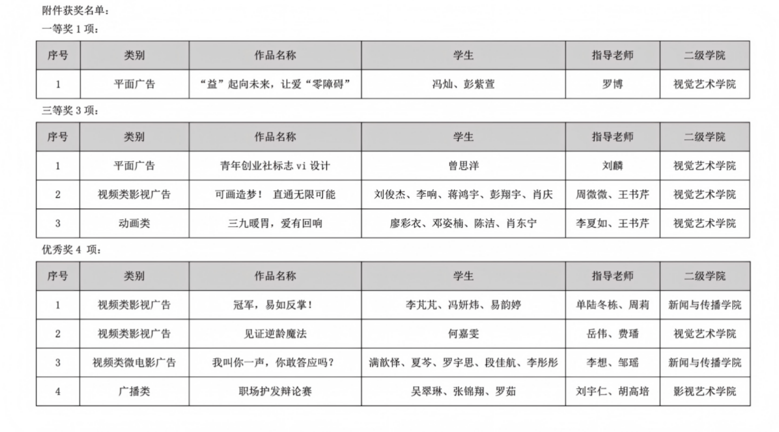 湖南大众传媒职业技术学院学子在第十七届全国大学生广告艺术大赛斩获多项大奖