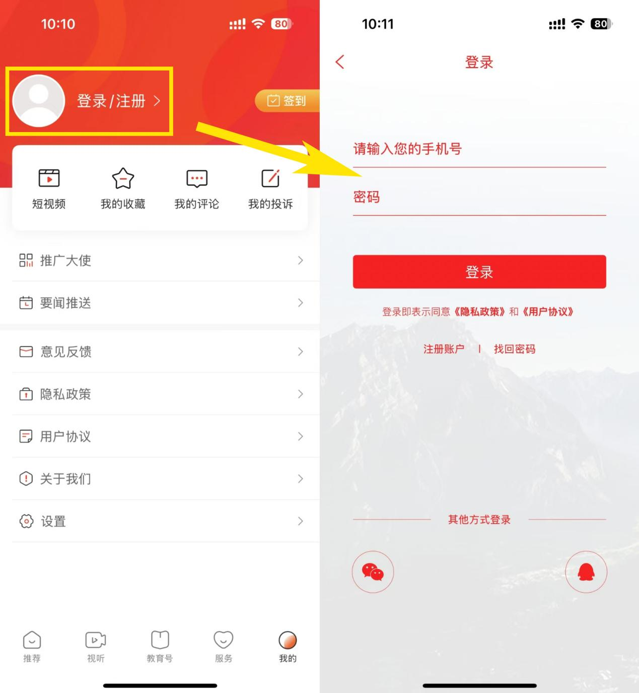 图2 登录/注册入口