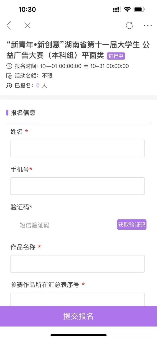 图11 公益广告大赛/报名填报页面
