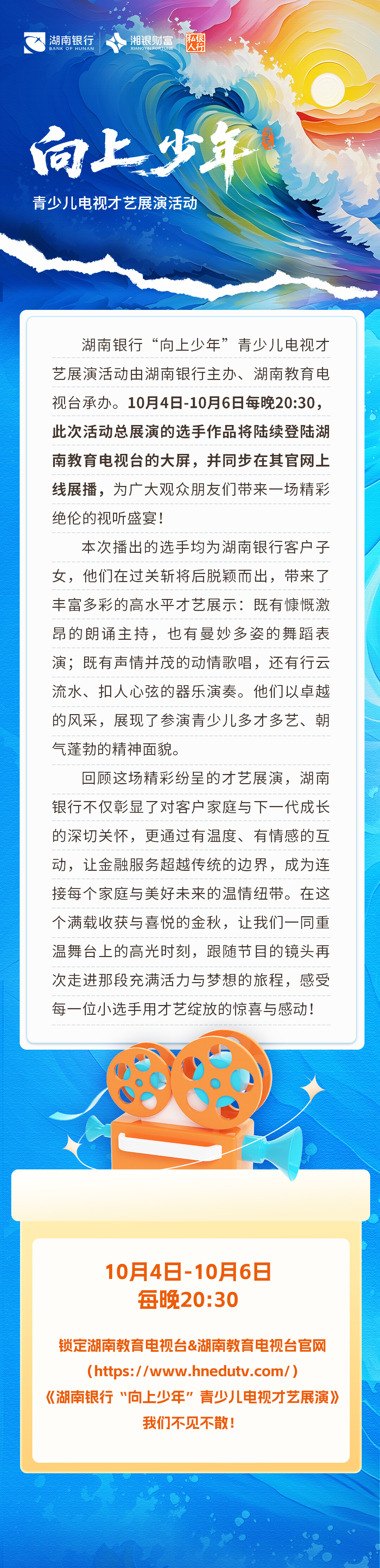 湖南银行“向上少年”青少儿电视才艺展演节目10月4日开播