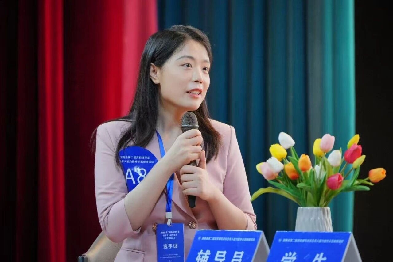 结合工作实际,她主持校级重点课题《新时代高职学生“家国情怀”培育研究》,参与3项省级课题,积极探索“分层分类”育人模式。通过组织“暑期三下乡”“返家乡社会实践”等活动,不断厚植学生的家国情怀;创新运营“青听商声”微信公众号,推动思政教育线上线下深度融合;她创作的微课《青春逢盛世,奋斗正当时》获湖南省“奋斗青春号”微课竞赛三等奖,以生动形式激励青年学子砥砺奋斗。