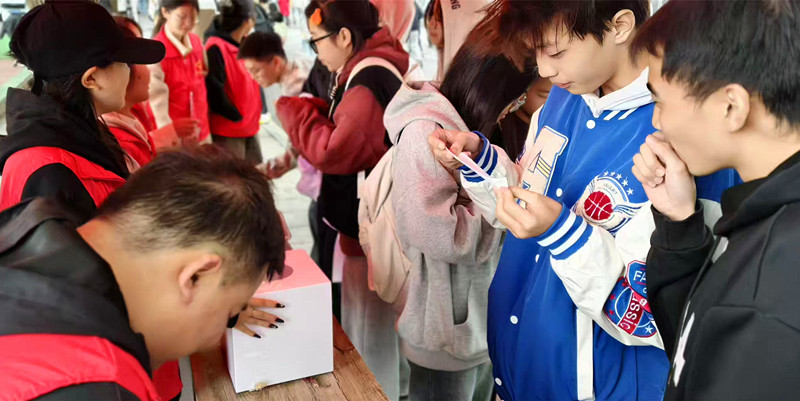 本次活动采用“问题抽签”的互动形式,增强了学习的趣味性和参与感。活动现场,同学们随机抽取装有题目的信封,面对涵盖党的发展历程、重要理论、光辉事迹与精神谱系的多维度考题,或凝神沉思,或自信应答。每一次流畅的回答,不仅是对平日所学知识的扎实检验,更是学子们党史学习热情与成果的生动展现。为提升参与积极性,活动还设置了即时奖励机制,根据答对题目数量颁发精美奖品,这种寓教于乐的竞赛模式,极大地激发了同学们的参与热情,在友好比拼中深化了对党史的理解与记忆,实现了知识性与趣味性的有机统一。