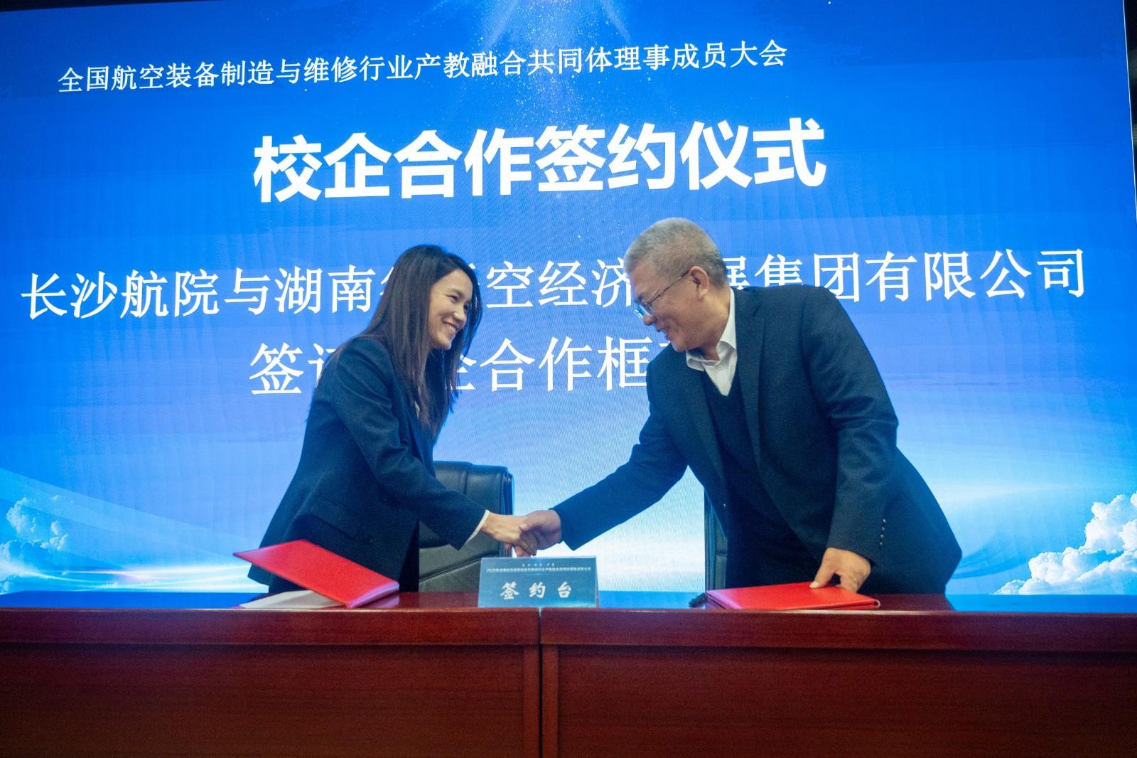 会议举办了3场校企合作签约仪式,为共同体发展注入强劲动力。长沙航院与中国航发商发有限责任公司签订共建航空发动机产业学院校企合作协议。长沙航院与湖南省低空经济发展集团有限公司、与湖南麓谷城市运营管理有限公司签订校企合作框架协议。未来,校企双方将在人才培养、产教融合、技术服务等方面开展深度合作,构建特色鲜明、内容丰富的课程体系,推进教育链、人才链与产业链的有机融合,为区域培养更多适应性强的航空维修领域高素质技能人才。