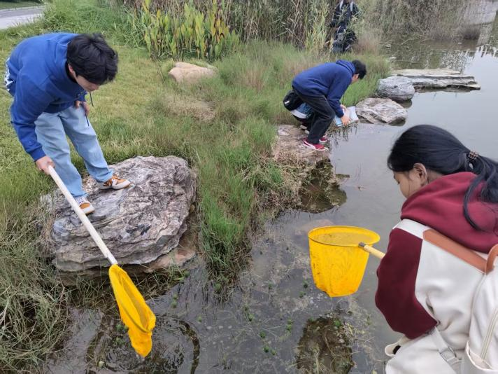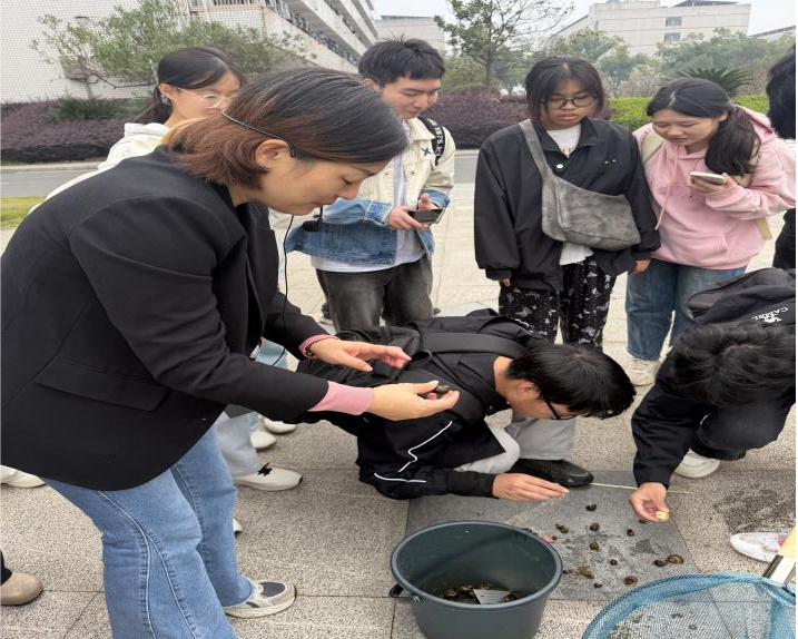 粼粼波光中,同学在专任教师曹燕秋的指导下手持抄网,动作娴熟地打捞藏匿于水中的福寿螺。岸边的同学手持小铁铲,细致刮除附着在堤岸上的螺卵。针对收集的福寿螺及螺卵,同学们遵循科学防治原则,将捕获的福寿螺及螺卵进行专业化处理。“这种物理防治手段,有效控制入侵物种,最大限度保护本土水生态。”曹燕秋现场指导。“耕读教育课让我们真正体会到学以致用的成就感。”畜牧1班刘浩明道出大家的心声。