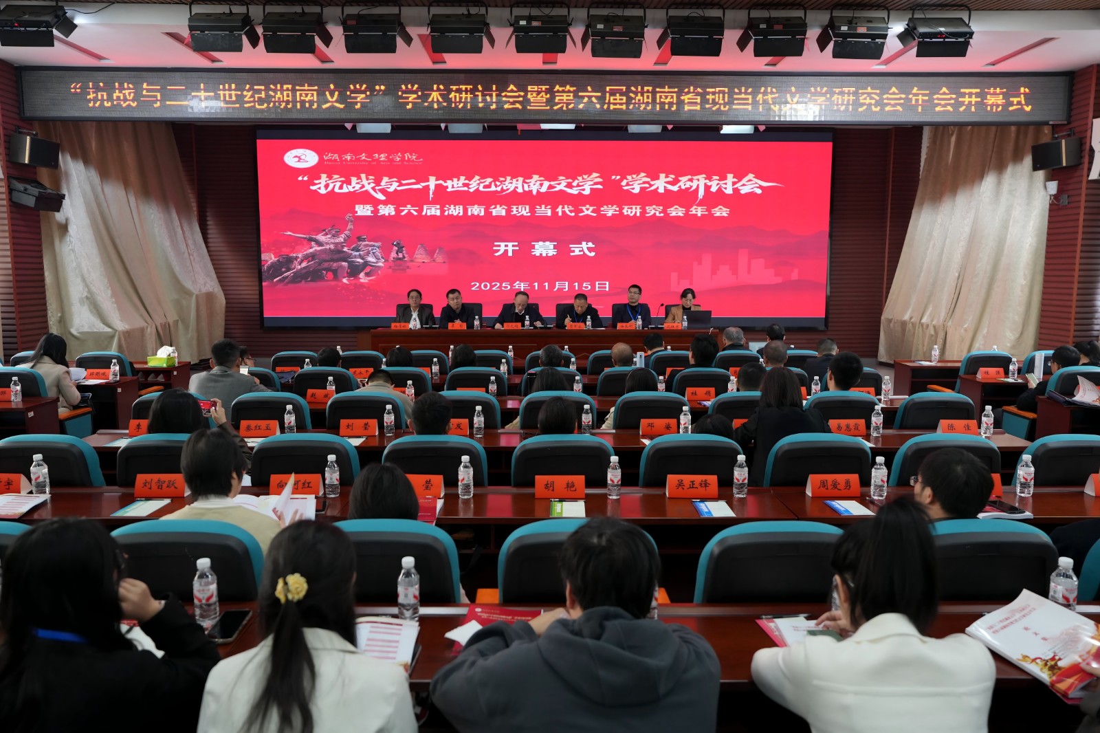 湖南文理学院纪委书记郭文超在致辞中表示,在抗战胜利80周年之际,会议聚焦“抗战与二十世纪湖南文学”,回望历史,探寻文学精神价值,将为地域文学研究与文化传承注入新活力。湖南省现当代文学研究会会长肖百容表示,近年来湖南现当代文学在史料发掘、理论批评及文学创作等方面形成了研创良性互动新格局,他呼吁以新视角对话抗战历史,推动研究再上新台阶。