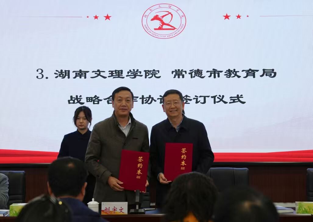 近日,湖南文理学院与常德市教育局签署战略合作协议。校地双方约定将共同打造基础教育创新示范区,全面提升常德市基础教育质量与教师队伍核心竞争力。