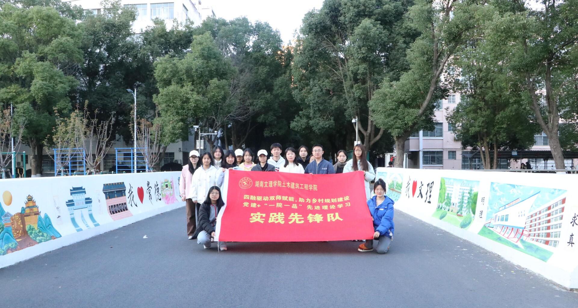 值得关注的是,该项目由土木建筑工程学院城乡规划、风景园林等专业的学生团队具体执行。“绘画团队成员以党员和入党积极分子为骨干。在设计上,大家巧妙构思,在主干道的桥梁上,一面描绘‘常德情怀’,一面刻画‘文理情结’,还创新融入了中国古典园林的‘漏窗’元素,让师生路过时能‘听’到柳叶湖的波涛,‘闻’到桃花源的花香,‘触’到诗墙的历史厚重感。”湖南文理学院土建学院党委书记刘双说道。