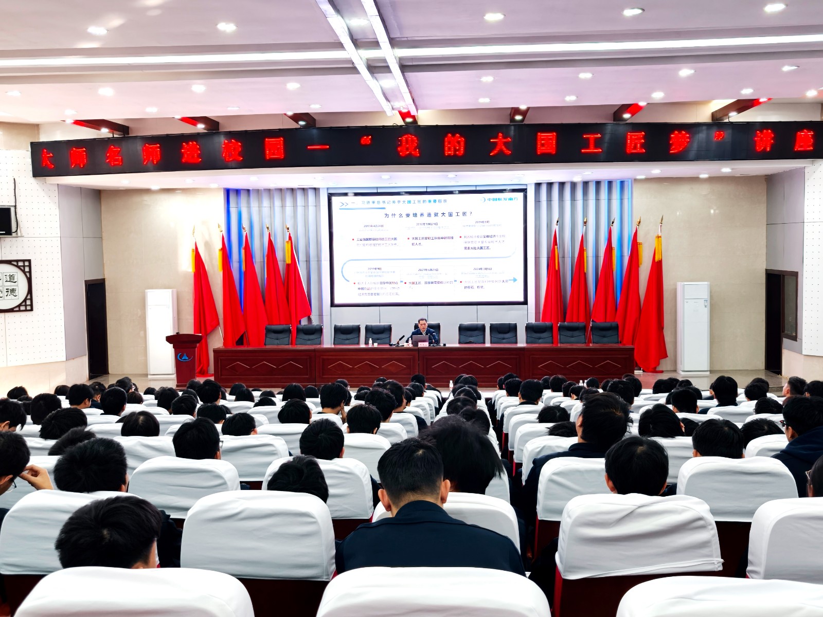 讲座中,邓元山围绕习近平总书记“大国工匠是我们中华民族大厦的基石、栋梁”等重要论述,结合国家战略与航空工业发展需求,系统解读了新时代“为什么要培养大国工匠、培养什么样的大国工匠、怎样培养大国工匠”等核心命题,深刻阐述了培育“匠心、匠魂、匠技”高素质技能人才的紧迫性与重要性,为学院师生指明成长方向。