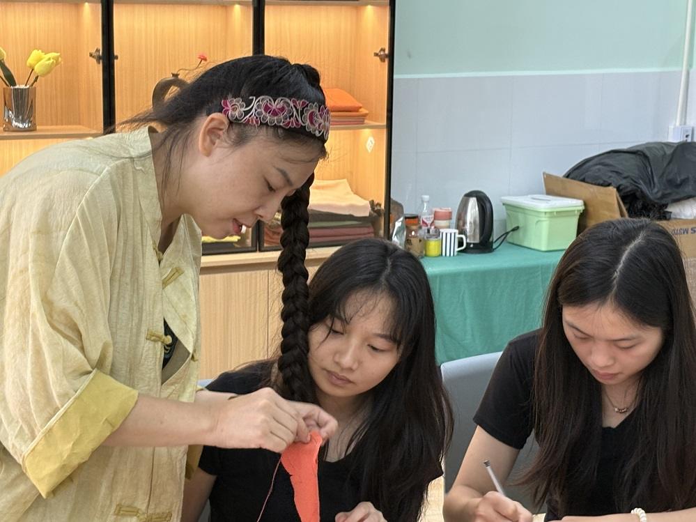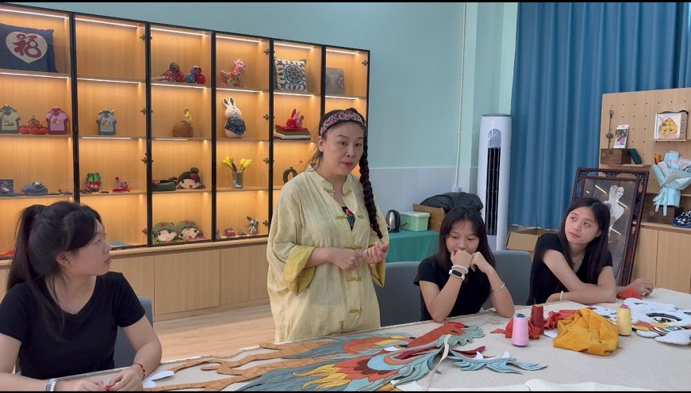 “转型后我们更懂用户需求,把复杂针法拆解成简单步骤,让新手也能快速上手。”创业骨干胡伊介绍,她所在的学生团队打造“布艺薪火”项目,开发涵盖基础针法、图案设计的系列线上课程,并配套销售包含碎布、针线、模板的标准化材料包,一经上线便收获不少年轻消费者青睐。除了电商运营,工作室还为学生提供多元创业场景:有的专注新媒体账号运营,通过短视频展示技艺魅力;有的深耕产品创新,尝试将拼布绣元素融入汉服云肩、手机壳、坐垫等新潮物件,让非遗贴近年轻人的生活场景;未来,团队还计划让技艺纯熟的学生化身“非遗讲师”,对接郴州多所中小学,每人负责3—5所学校的第二课堂教学,在传播文化的同时锻炼教学管理能力。
