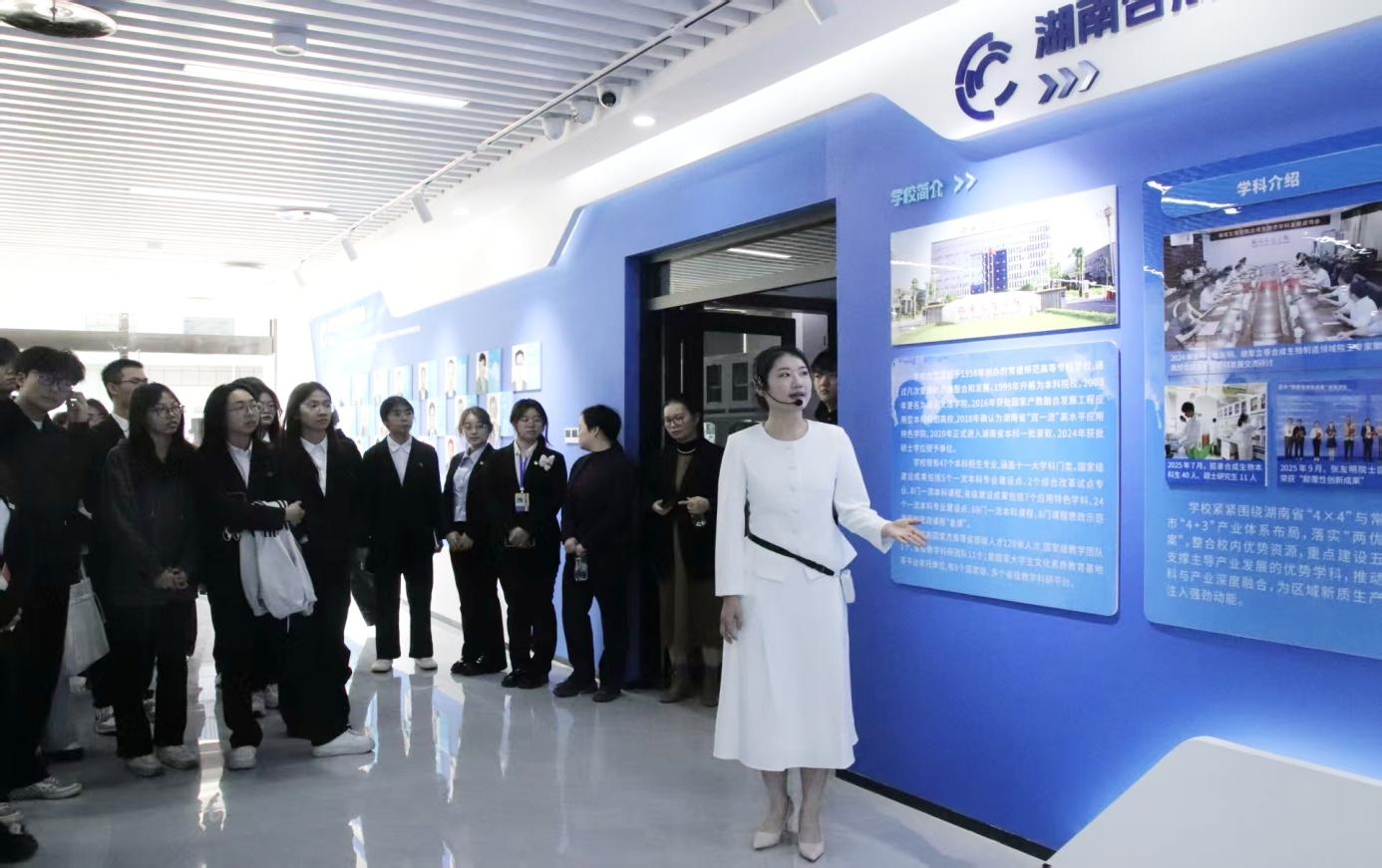 实践研学,厚植成长。为推动学用结合,学校精心设计“行走的思政课”实践环节。组织学生走进湖南合成生物制造产业创新中心,近距离观摩合成生物技术从实验室走向产业化的全过程,与科研人员探讨“科技如何赋能民生”;赴湖南省侵华日军细菌战罪行研究基地开展爱国主义教育,在史料文献中感悟“家国情怀”的厚重;走进湘西北文化中心,通过体验非遗技艺、参与文创设计,深化对“文化自信”的理解;联动津市教育基地开展创业生态考察,走访合成生物产业园区与初创企业激发创新创业热情。“以前觉得‘新质生产力’离自己很远,现在发现只要把专业学好,我们也能成为科技创新的生力军。”合成生物学专业学生温颖慧在实践日记中写道。