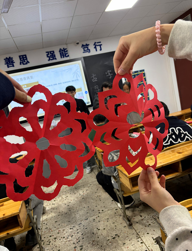 活动现场,各参赛小组精神饱满,斗志昂扬,在智趣交融的闯关过程中展现出了敏捷的思维和良好的素养。尤其在“纸韵承古·剪艺传薪”实践环节,同学们在指导老师的悉心讲解与示范下,亲手体验了剪纸艺术与活字印刷技艺。当一幅幅亲手剪出的精巧“福”字,以及一张张拓印着“文脉传承”字样的作品逐一呈现时,现场响起了阵阵赞叹与掌声。来自财务管理2301班的彭语萱同学分享道:“以前对传统文化的了解大多来自书本和课堂,感觉有些距离。这次能够亲手触摸、亲身操作,让我真切感受到了非遗技艺背后蕴含的智慧和匠心,对‘传承’二字的分量也有了更深刻的体会。”