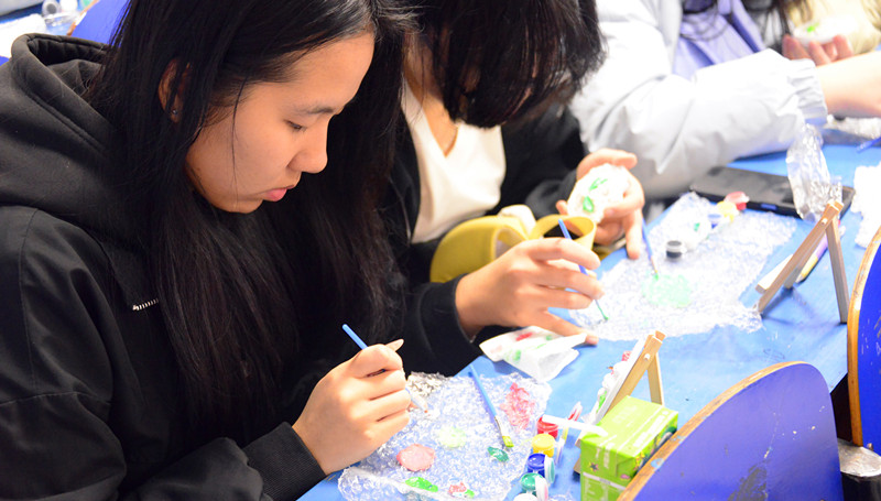活动现场设置了积木创意拼搭与石膏模型彩绘两大体验区。在柔和灯光与舒缓音乐的环绕下,同学们自由选择心仪项目,很快沉浸于手工世界。有的细心拼接每一块积木,构筑出充满想象力的立体作品;有的专注调色、绘制,为石膏模型赋予独特的情感色彩。现场物料丰富,氛围温馨宁静,同学们在创作中逐渐放松身心,体验手作带来的专注与平静。