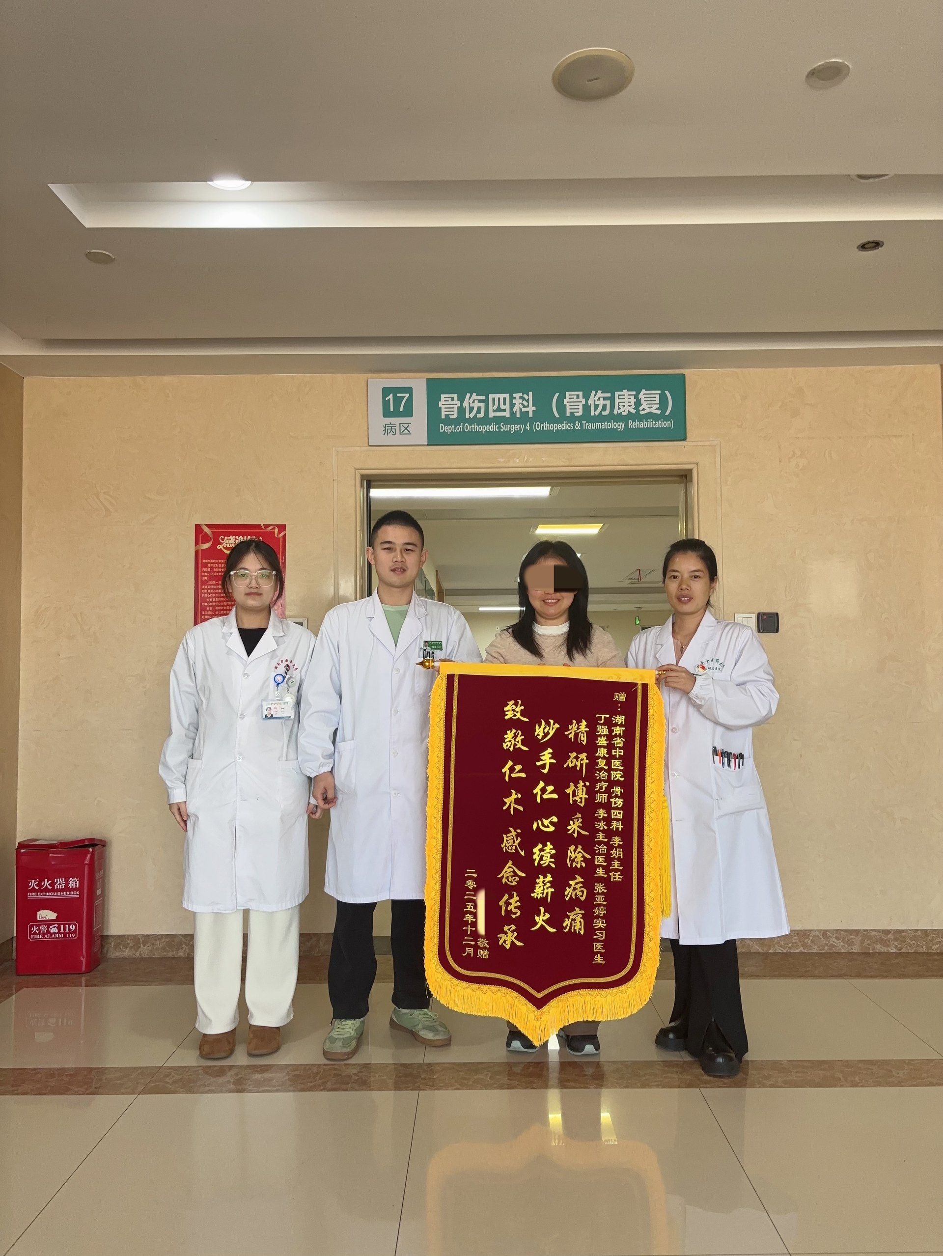 “感谢省中医院骨科医护团队,我终于能好好走路了……”近日,备受膝关节疼痛困扰的朱女士在湖南中医药大学第二附属医院(湖南省中医院)治疗半个月后,顺利恢复了行走自由,她激动地为医院骨伤三科、四科医护团队送上锦旗表示感谢。