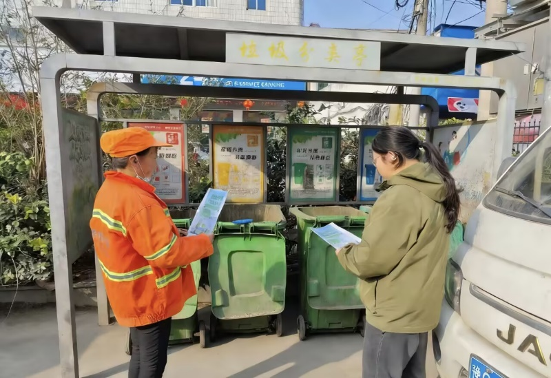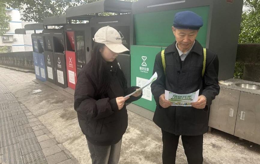 在社区实践环节,志愿者们兵分多路,深入各自所在城市与乡村的垃圾分类投放点进行环境保护宣传。在垃圾分类定时投放点,志愿者向居民讲解“家庭厨余垃圾如何精准分类”,并结合农村人居环境整治要求,重点科普了农村生活垃圾、污水治理的重要性,引导居民从源头减少污染。在街头垃圾分类亭,志愿者为环卫工人、过往市民发放宣传折页,结合“节能降碳增效行动”,讲解垃圾分类如何助力减少焚烧、填埋环节的碳排放,通过“一对一指导”帮助居民识别可回收物与其他垃圾的区别,用接地气的当地语言传递“低碳生活,人人可为”的理念。