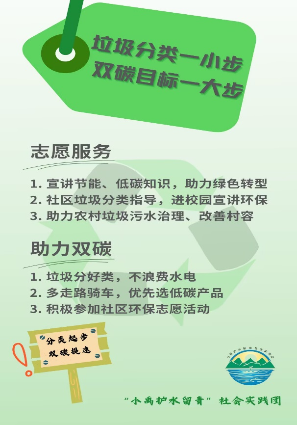 “本次社会实践活动将宏大的‘双碳’目标转化为群众可感知、可参与的日常行动,不仅提升了社区居民的垃圾分类准确率,更让‘绿色低碳’从抽象概念变成具体的生活习惯,用暖心服务让绿色理念扎根人心。”该社会实践团负责人表示。后续,“小禹护水留青”社会实践团将持续深化“双碳+垃圾分类”志愿服务模式,推动形成“个人践行、社区联动、社会参与”的低碳环保合力,让青春力量在守护绿水青山的征程中绽放光彩。