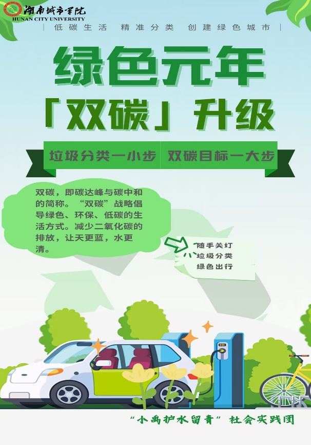 志愿活动前期,团队结合“碳达峰十大行动”任务要求,精心设计了以“绿色元年双碳升级”为主题的宣传海报。宣传海报内容不仅涵盖了碳达峰、碳中和的科普知识,还对垃圾分类与双碳目标的关联进行了生动解读,还整理了“随手关灯、绿色出行、精准分类”等低碳生活小贴士,让专业知识变得更加通俗易懂。