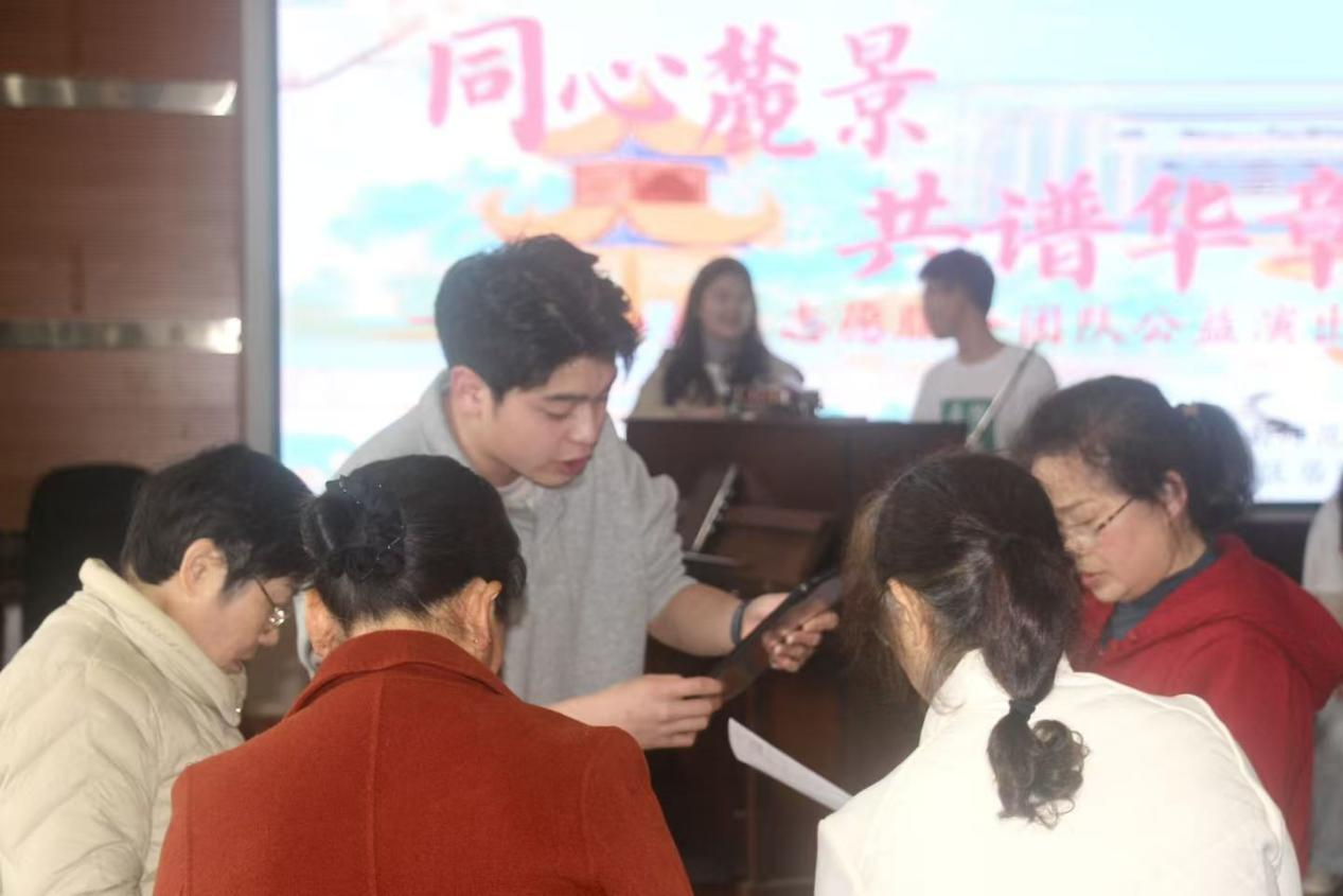 在麓景社区的活动现场,肖嘉尧与音小益的志愿者们走入人群,通过现场弹唱、面对面交流等沉浸式互动方式,瞬间点燃了社区居民的热情。不少社区老人感叹,原本难以理解的诈骗话术,通过这首简单的歌谣变得清晰明了,“大家一起来听清,陌生电话别轻信”的口诀更是被大家反复传唱。