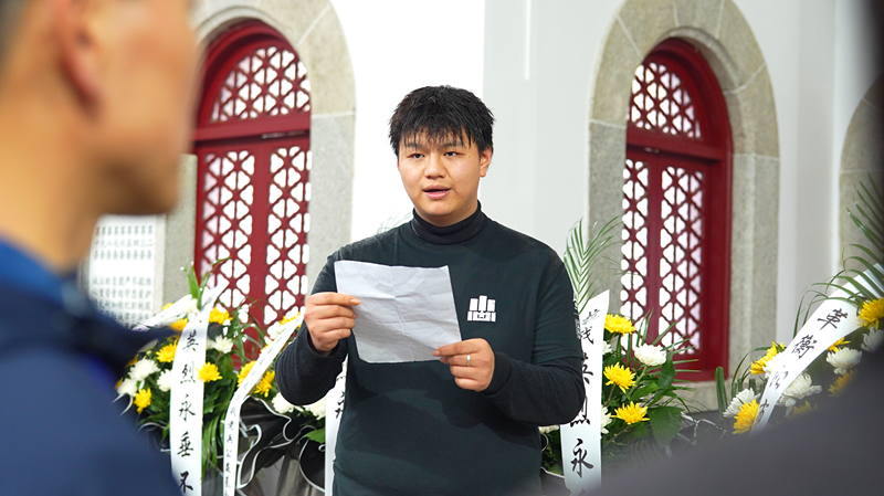 来自湖南交通工程学院医学技术与护理学院2025级学生郑昭澜,作为青年志愿者代表在仪式上发表了青春宣言。他目光坚定、语调激昂:“南岳青山安息着无数抗战忠魂。国难当头之际,英烈们挺身而出,舍生赴死,以血肉之躯抵御外侮,用热血生命捍卫家国河山,铸就了中华民族不屈的脊梁。”他代表广大青年学子郑重表态,将铭记历史、继承遗志,把深沉的爱国情怀转化为砥砺前行的强大动力,让青春在为祖国和人民的奉献中焕发绚丽光彩。