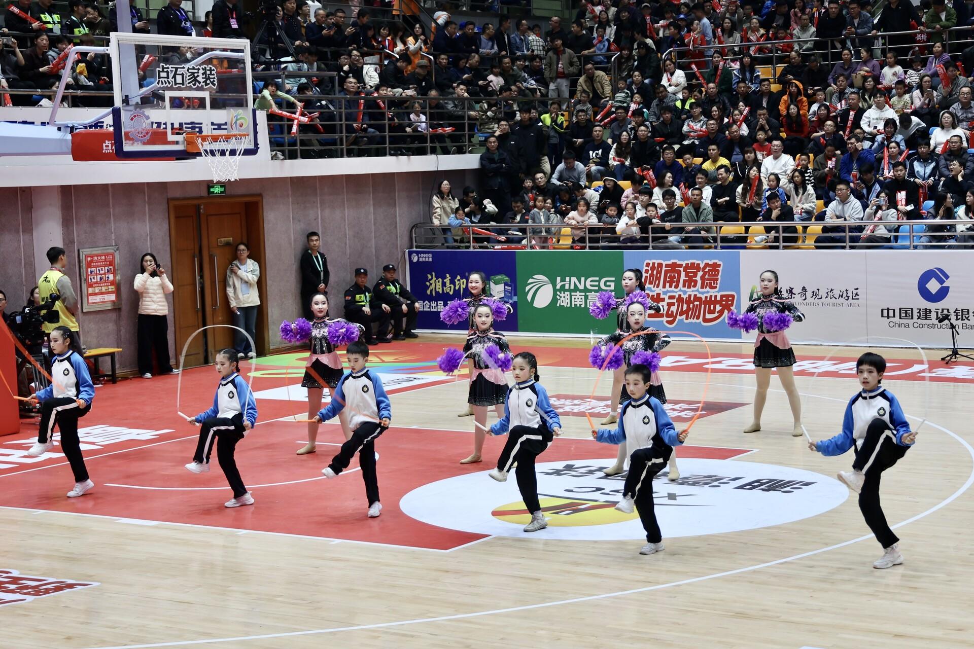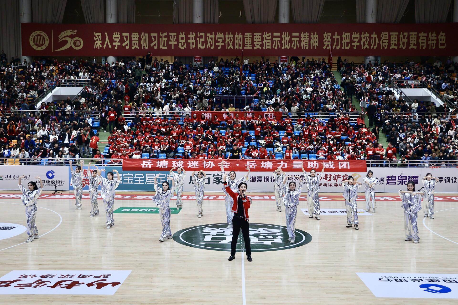 当晚,湘潭大学体育馆内灯火璀璨、掌声雷动。20时许,随着“湘BA”篮球赛第二节结束哨声响起,体育馆瞬间从竞技赛场变身青春文艺舞台,中场休息被精心打造为一场沉浸式“文体盛宴”。