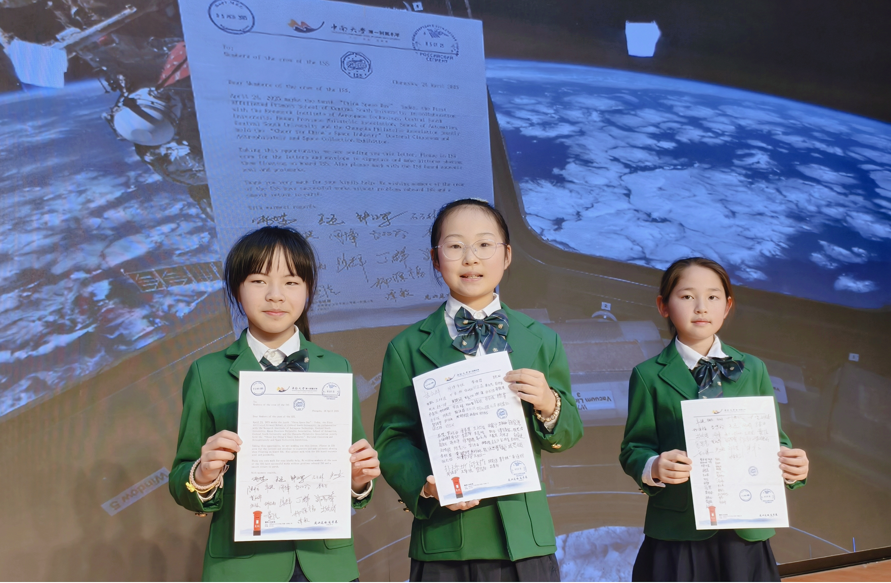 这封归航的太空邮件是中国基础教育领域首封成功送达国际空间站并获得国际航天、集邮双重权威认证的师生联名信件。2025年4月24日中国航天日当天,承载着150名师生亲笔签名与航天梦想的信件从麓枫少年邮局正式寄出,经拜科努尔发射场升空,搭乘货运飞船对接国际空间站。在轨期间,国际空间站第73远征队航天员完成了邮件展示、8K高清拍摄、太空专属邮戳加盖及亲笔签名等一系列规范操作。随后邮件随联盟MS-27返回舱穿越大气层安全着陆,最终获得国际集邮专家协会(AIEP)权威认证,成为首件具备“在轨展示+在轨盖戳+在轨签名”完整航天集邮凭证的太空实物。