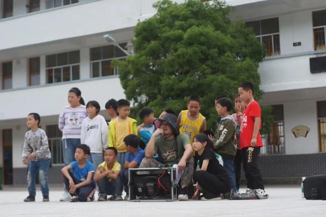 在炎陵县下村乡学校的操场上,我盯着监视器检查镜头内容,身后密不透风地围着一群生龙活虎的孩子,他们挤挤挨挨,伸着脑袋都想看个究竟。