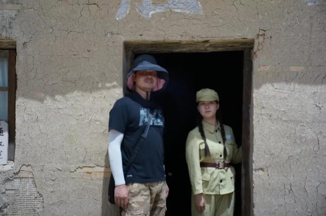 下午一点多,我们刚刚在新疆生产建设兵团农八师一五二团的军垦第一连旧址宿舍里吃过午饭。走到外边,太阳晒得人浑身发烫、眼前发黑、头皮冒油;刚刚咽下干面包的嗓子此时更加干燥,我觉得它都快要冒烟了。这时,我看到参与情境再现的那位女孩子已经换好了服装,一瞬间觉得这些事情都比较美好;晴空烈日,土屋白杨,要的就是这种与历史擦肩而过的恍然如晤的感觉。