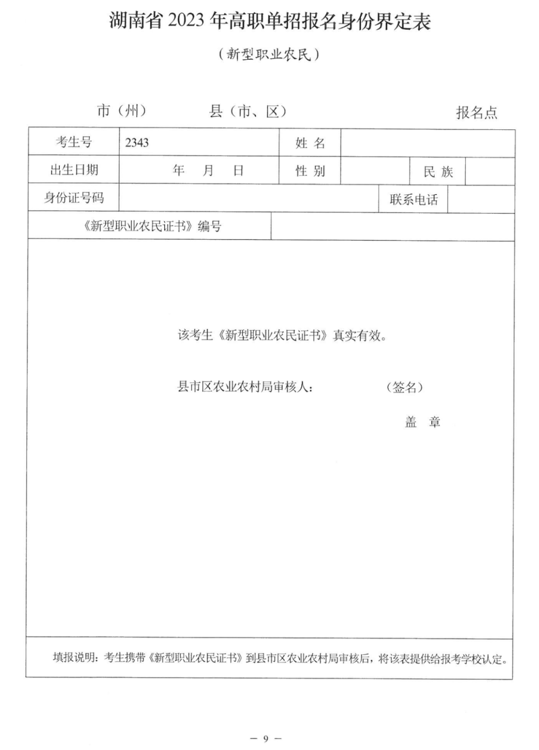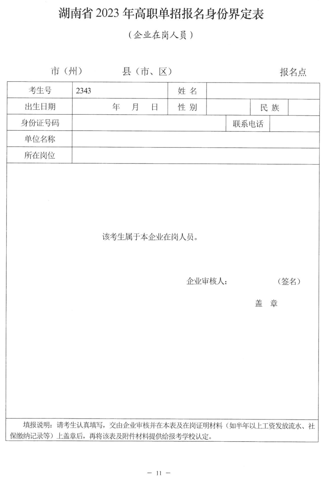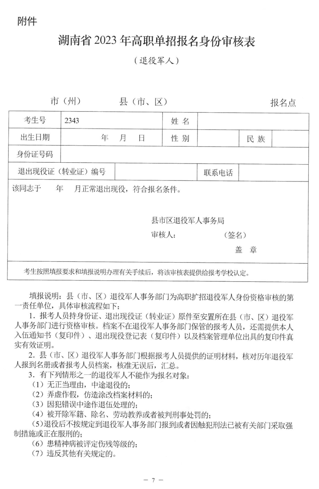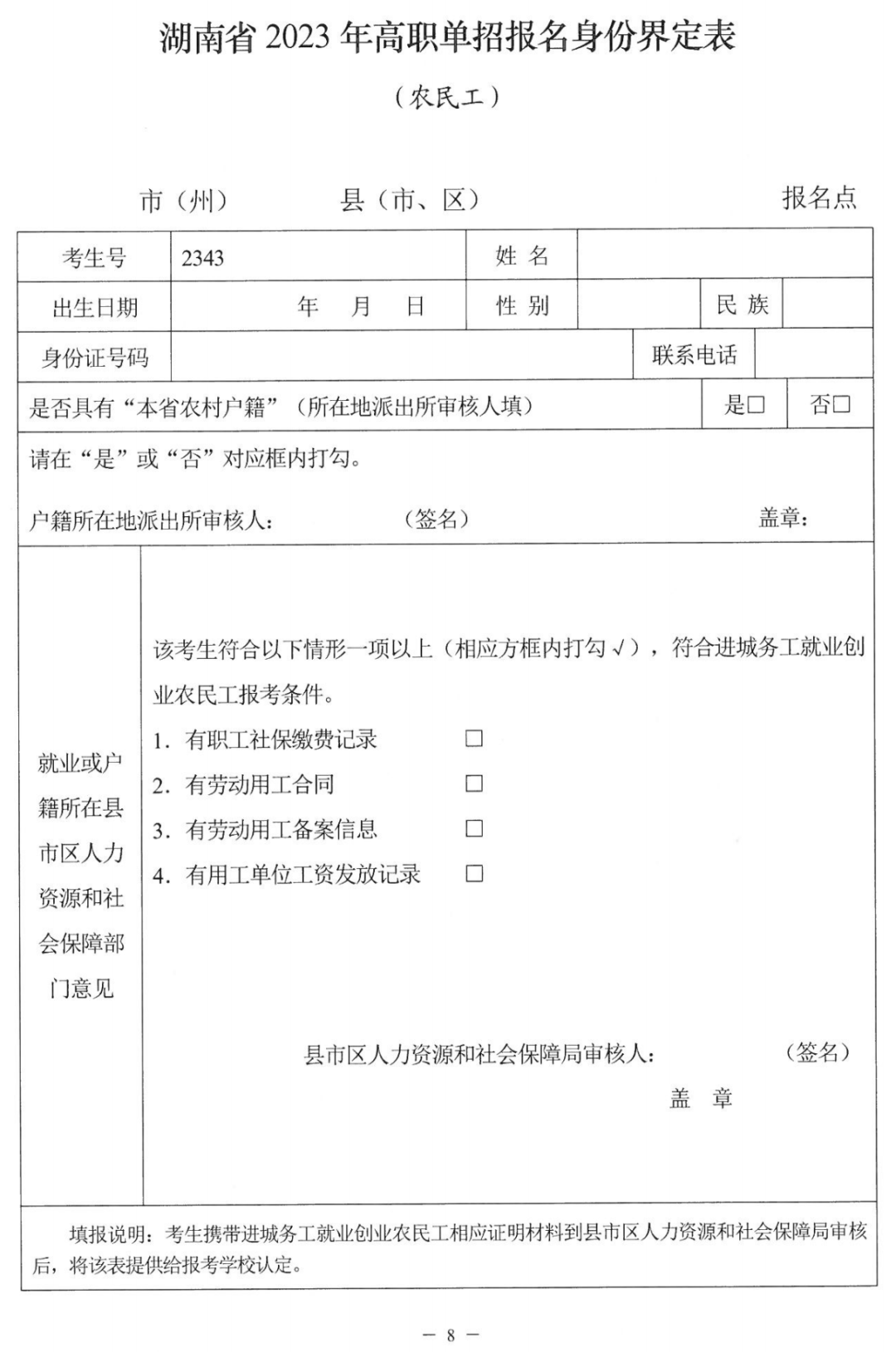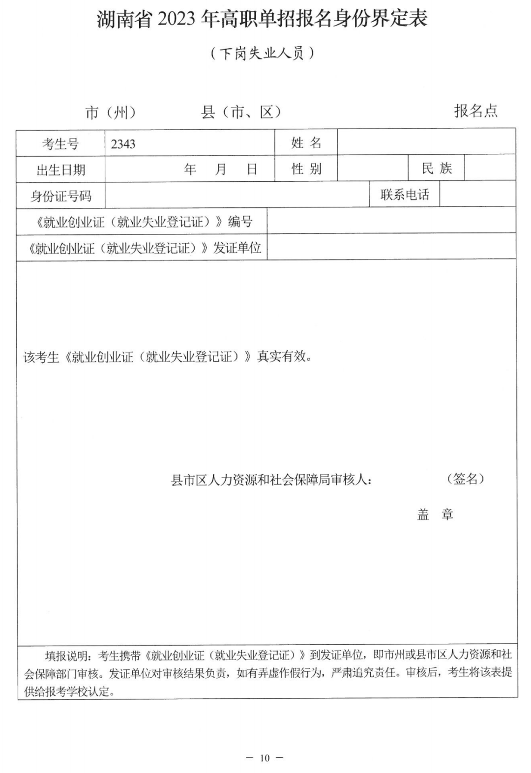 湖南省2023年高职单招报名身份审核(界定)表.doc